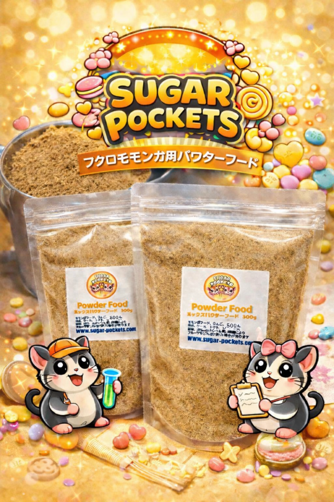当店で普段から使用しているオリジナルのパウダーフードです。栄養バランスを考えて作っています。発送も可能ですので、ぜひ一度お試しください🐿️✨1袋 300g入 税込1000円内容モモンガフード、南瓜、にんじん、トマト、ケール、りんご、バナナ、マンゴー、ミルワーム、蚕蛹、HPS、カルシウム、ビタミン等